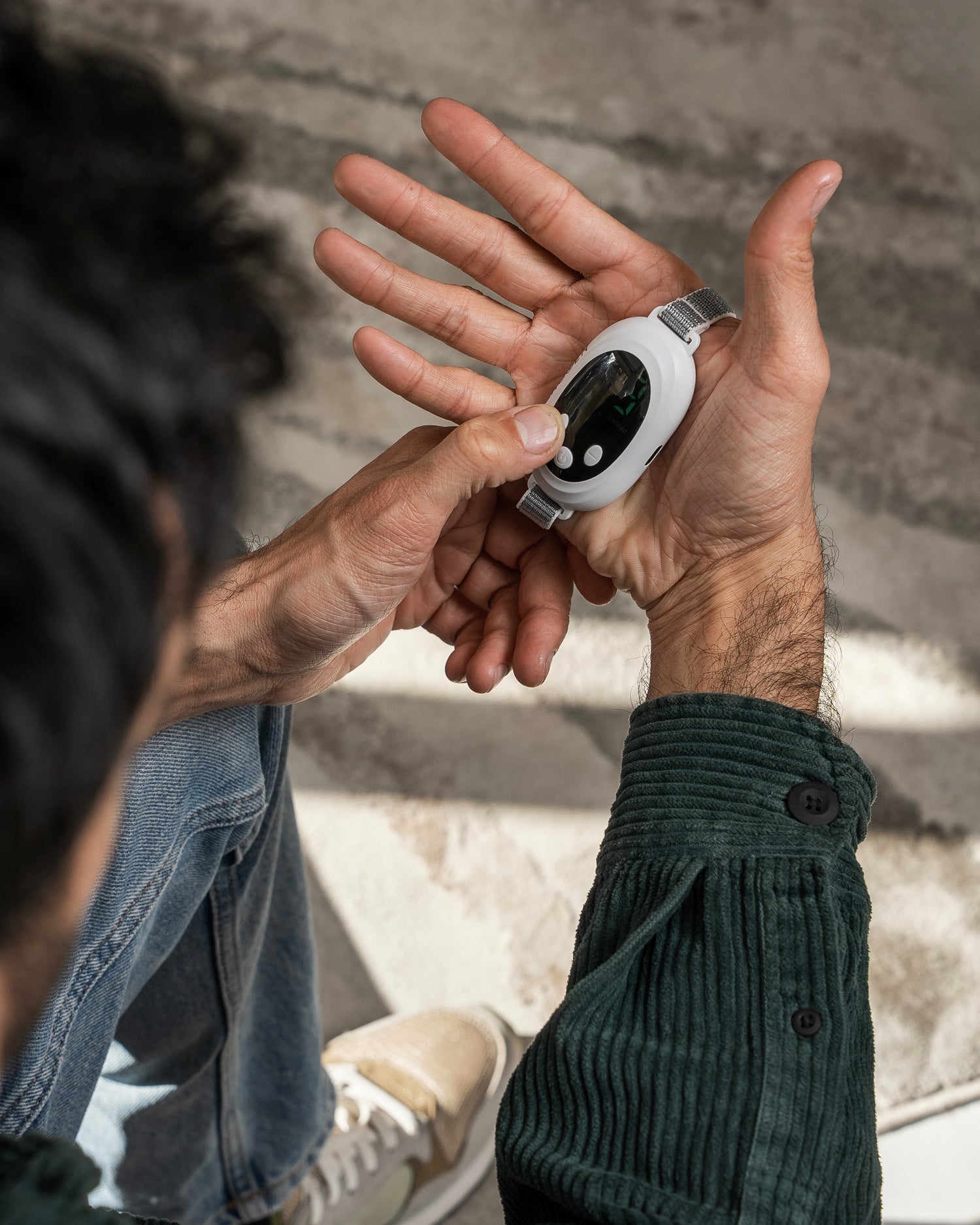 The device sends gentle microcurrent pulses from your palm through the nervous system. Depending on how you hold it, these pulses trigger specific brain wave patterns that either help you relax for sleep or enhance alertness and focus.